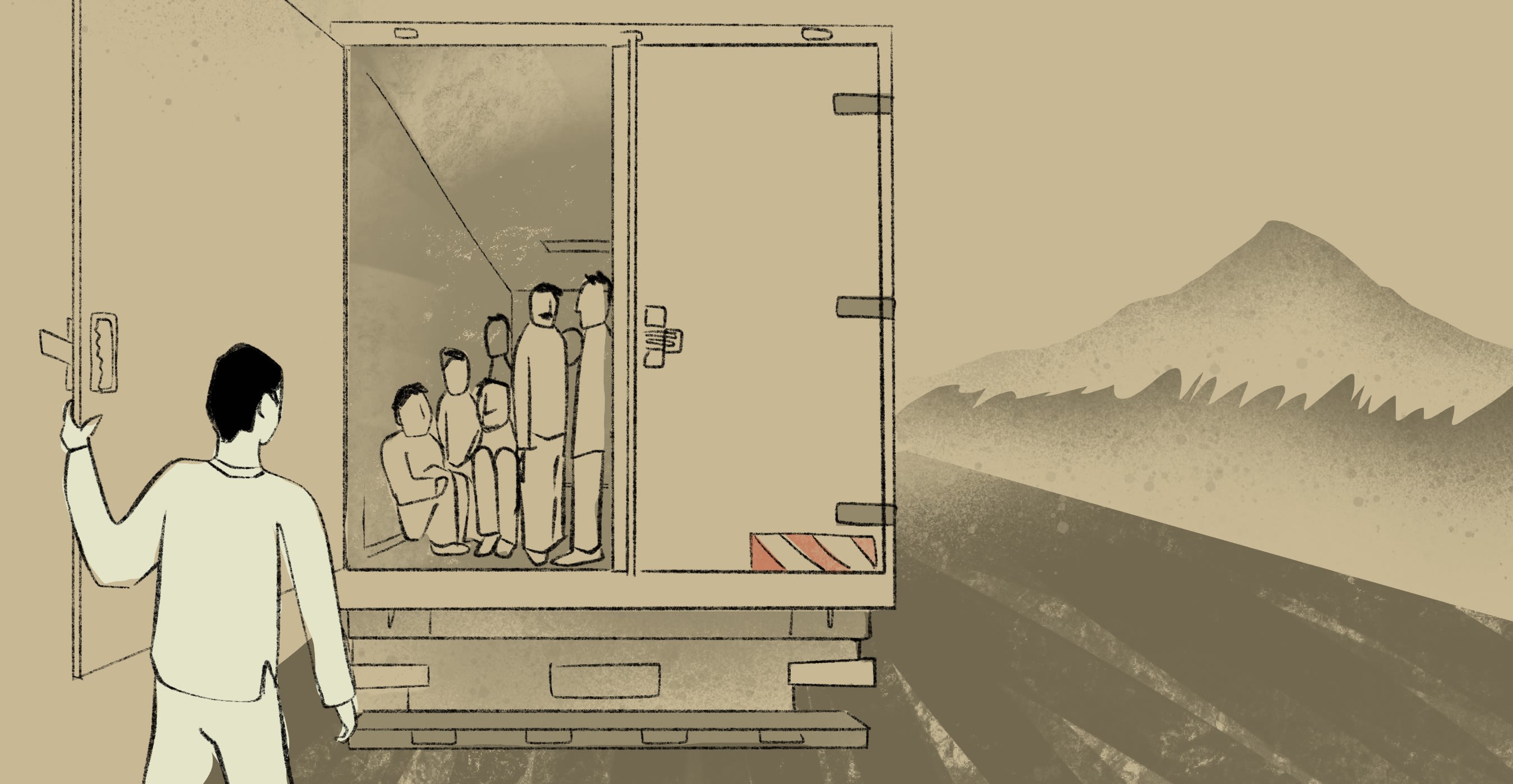 تستغرق الشاحنة التي تقل المهاجرين من المكسيك إلى الحدود الأميركية 13 ساعة، وبينما تقدر سعتها بنحو 60 فرداً كان يتم وضع 120 مهاجراً داخلها. وفق (ص) فإنه خلال المرة الأولى التي خرجوا فيها متجهين لبدء رحلتهم نحو الحدود أوقفتهم قوات الأمن المكسيكية، وما كان من السائق والمرافق له إلا أنهما غادرا الحافلة وهربا وسط المزارع... واحتجزتنا السلطات المكسيكية ليلة واحدة وبعدها أطلقوا سراحنا ومنحونا إذناً بالبقاء لأسبوع فحسب... هاتفنا (ت. المهرب) وأرسل شخصاً لنقلنا إلى إحدى المزارع وبقينا هناك يوماً ثم بدأنا رحلتنا من جديد حتى حدود مكسيكو سيتي... وأبلغنا (ت) أنه دفع رشى هذه المرة حتى نستطيع تجاوز الطريق".