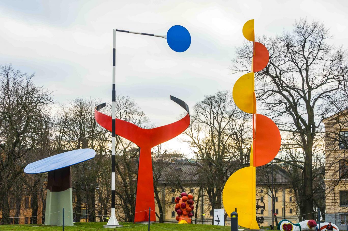 والحقيقة أن المرء يحتار عادة ما الذي يختاره للحديث عن أعمال كالدر، لكن نصباً يوجد اليوم في ستوكهولم عاصمة السويد قد يفي بالغرض هنا، حيث يشمخ هذا النصب هناك في الهواء الطلق عند مدخل حديقة عامة ملاصقة لـ"المتحف الحديث" moderna museet منذ انتهى عرضه الأول داخل المتحف في العاشر من سبتمبر (أيلول) 1961. يومها بفضل النجاح الهائل الذي حققه عرضه طوال أشهر الصيف في المتحف المذكور، تقرر الإبقاء عليه في عهدة المتحف كعرض دائم، ما جعل لستوكهولم بدورها عملاً لكالدر الذي كانت عواصم العالم تتنافس لاقتناء أعماله في ذلك الحين.