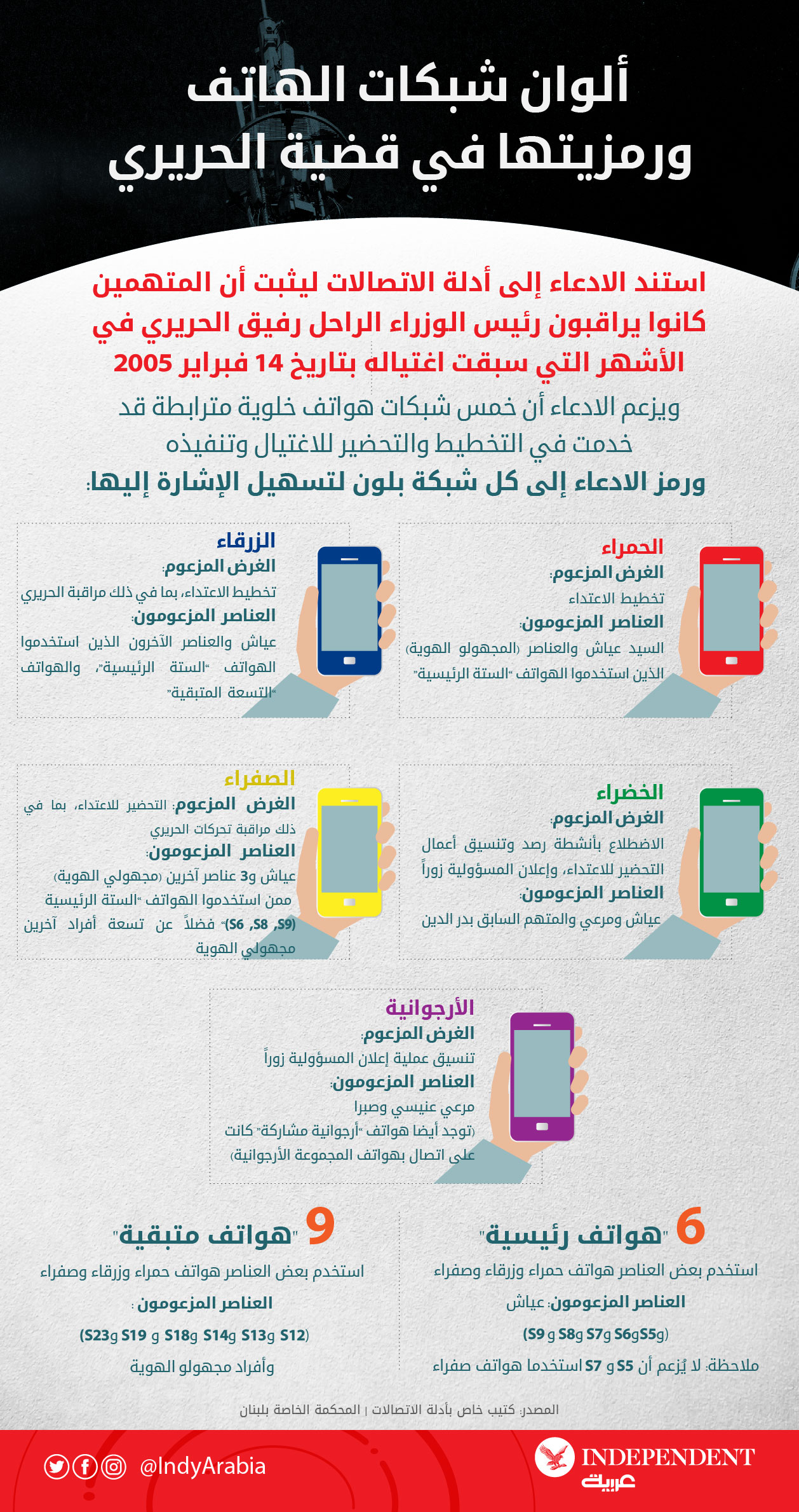 العناصر المزعومون، السيد عياش والعناصر المجهولو الهوية الآخرون الذين استخدموا الهواتف "الستة الرئيسة" والهواتف "التسعة المتبقية".