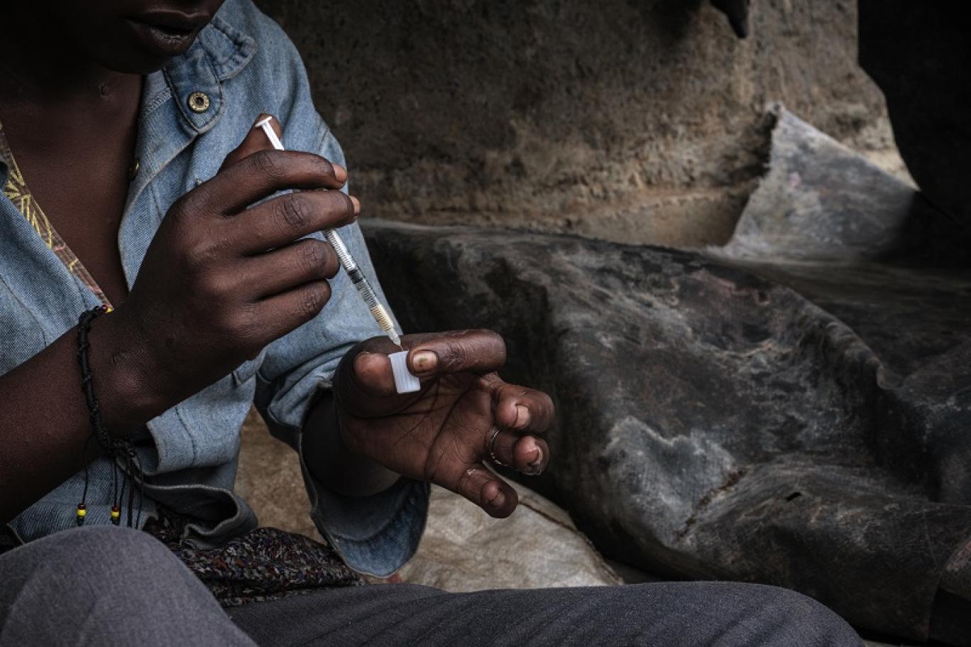 وقالت وانجيرو البالغة 22 سنة، وهي تحقن إبرة في وريد متضرر، فيما يحيط بها 60 مدمناً آخر في ساحة خلف كنيسة في أحد الأحياء الفقيرة في نيروبي، "أنا مدمنة بشكل كبير، وعادةً ما أحتاج إلى جرعتين".