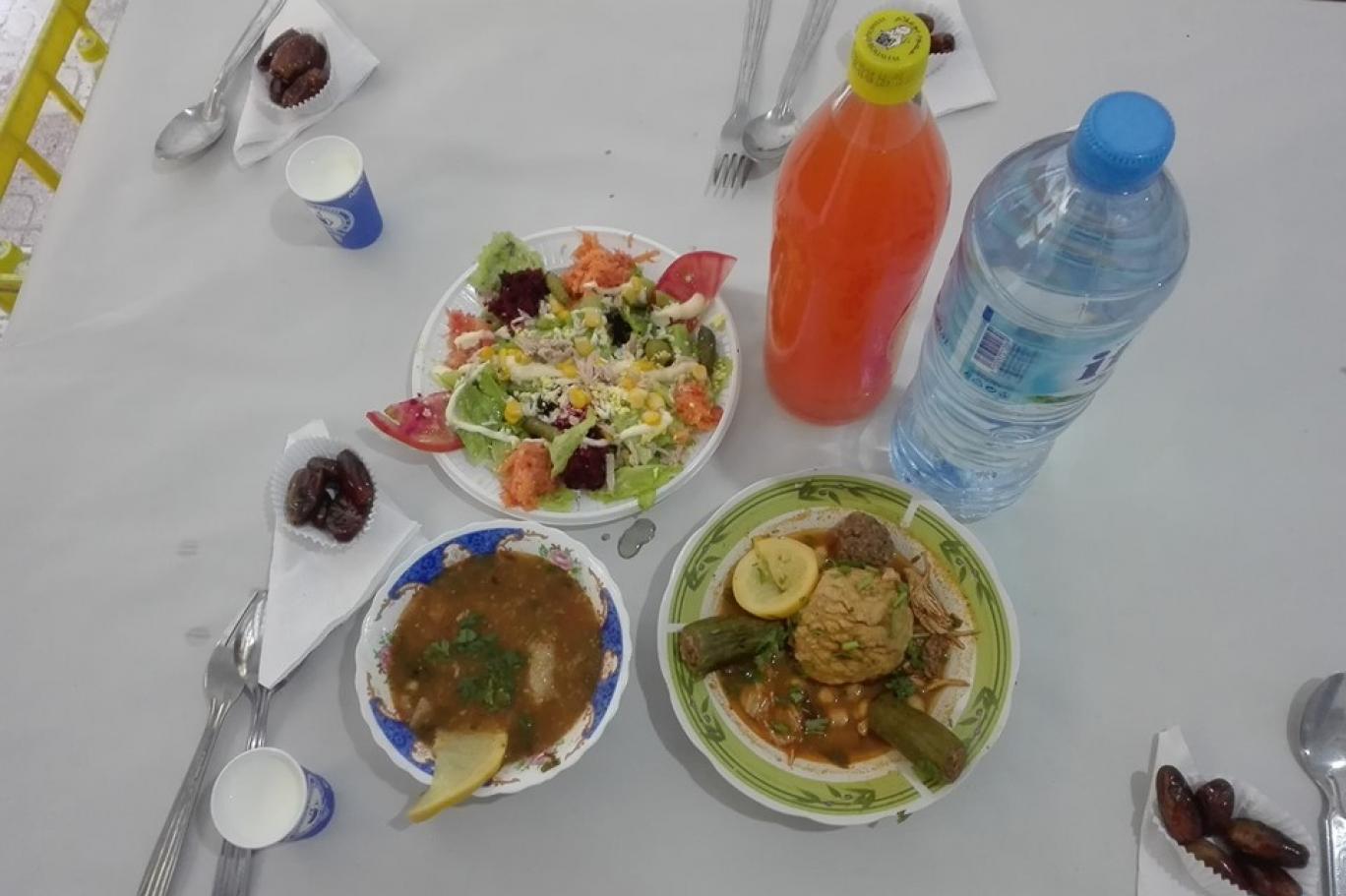 ويتولى عدد من المتطوعين والمتطوعات من مختلف الأعمار عملية طهي الطعام وتوزيعه، وتنظيم طاولات مأدبة الإفطار. وتتكون الوجبة اليومية التي يقدمها مطعم خيري من حساء فريك، إضافة إلى طبق رئيسي، يختلف من يوم إلى آخر مع السلطة والخبز واللبن بالتمر والمشروبات والتحلية. ويتكرر هذا المشهد في كثير من "مطاعم الرحمة" المنتشرة عبر محافظات الجزائر، حيث يتجمع عدد من الفقراء وعابري السبيل، أمام هذه المطاعم قبل دقائق من موعد الإفطار، لأخذ نصيبهم. ويقول مختار، وهو صاحب مطعم بضواحي الكاليتوس، إنّه يبادر سنوياً لفتح أبواب محله أمام المحتاجين. ويشير إلى أنّ فرحته "تكبر كلما كان عدد المفطرين في المطعم يتضاعف يوماً بعد آخر". ويؤكد صاحب مطعم آخر، أن عدد المتبرعين بالأموال والمستلزمات كبير، فالجميع يتسابق من أصحاب المال لتقديم ما لذّ وطاب في شهر رمضان، الذي هو شهر الرحمة والمودة والتعاون بين المسلمين. وعلى الرغم من مساهمة بعض الخواص في إطعام المساكين، تبقى حصة الأسد من نصيب الهلال الأحمر الجزائري الذي يحرص على تنظيم "موائد الرحمن" كل رمضان وتقديم وجبة متكاملة للصائمين.