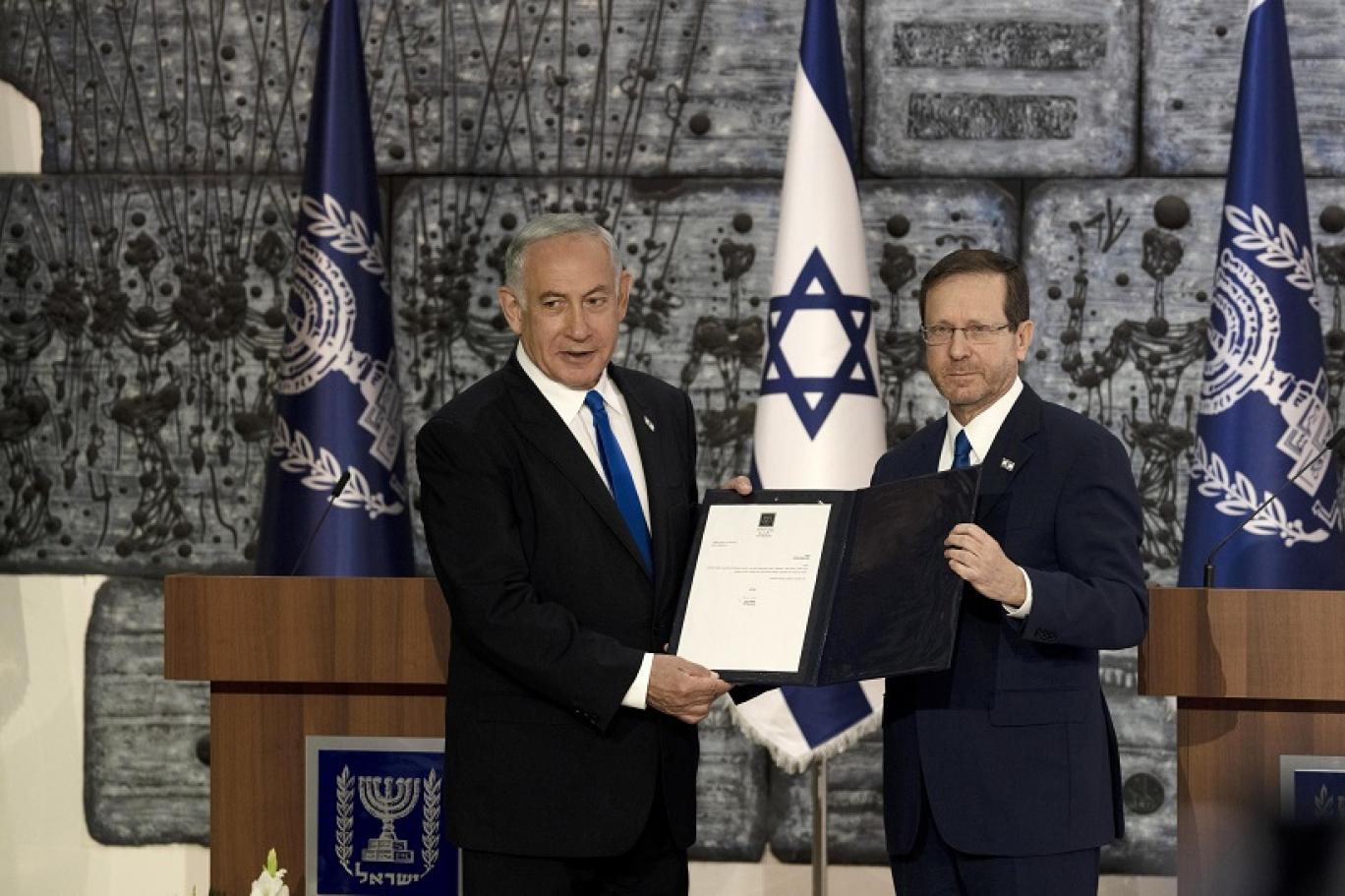 ووسط تهجمات المعارضة والكتلة التي أطلقت على نفسها "فقط ليس نتنياهو"، وجد الرئيس هرتسوغ ضرورة، عند تفويض نتنياهو، بالتخفيف من حدة النقاش الإسرائيلي حول تداعيات تفويض عضو كنيست مقدمة ضده لوائح اتهام فساد ورشى عدة، وأعلن هرتسوغ أنه عند اتخاذ قرار تفويض نتنياهو "لم أستهن حيال المحاكمة ضده بمخالفات فساد. فالمحكمة العليا قررت، بشكل واضح، بما يتعلق بلوائح اتهام ضد عضو كنيست ومرشح لتشكيل حكومة في قرارات حكم عدة"، ولمح بذلك إلى أنه لا مانع بتكليفه لتشكيل الحكومة، لكن نتنياهو الذي تحدث بعد تفويضه تجاهل تماماً حديث هرتسوغ والنقاش الذي تشهده إسرائيل، وأعلن بتفاخر أن "الشعب حسم بما لا يقبل التأويل أنه يريد حكومة برئاستي".