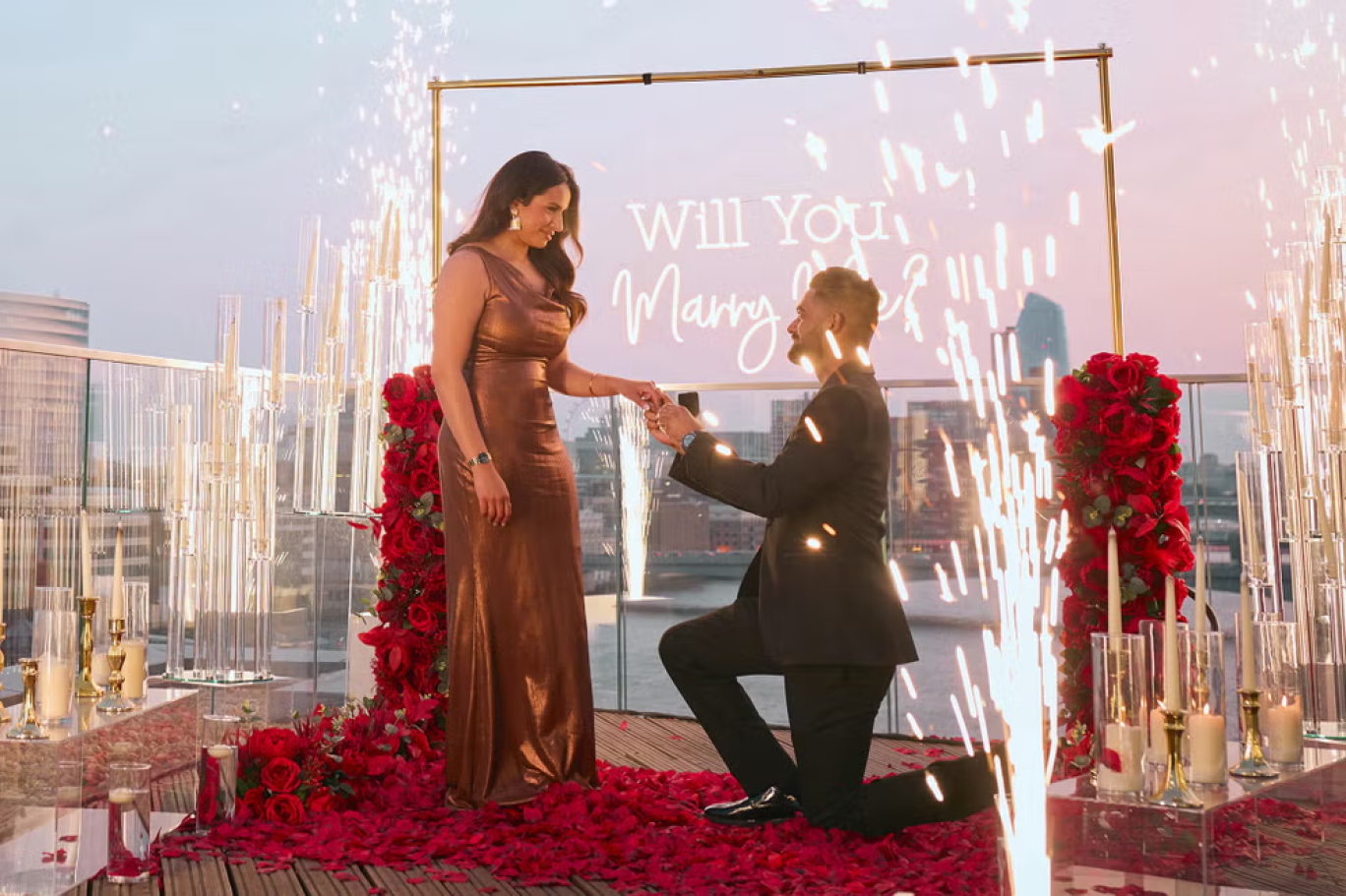 لو اعتبرتم أياً من المشاهد المذكورة مألوفة، فيحتمل أنكم شهدتم عرض زواج مصمم- ونتاج خدمة تزداد شعبيتها في كل أرجاء المملكة المتحدة، وينفق عليها طالبوها بين 1500 و165 ألف جنيه استرليني، لكي يعرضوا الزواج على شخص ما. لو رأيتم في الموضوع بذخاً، فأنتم محقون، لا سيما وسط انتشار أزمة معيشية، لكن سوق شركات عروض الزواج مزدهر، فيما أفادت بعض الشركات عن تضاعف عدد عملائها أربع مرات في عام 2023، مقارنة بعام 2019.