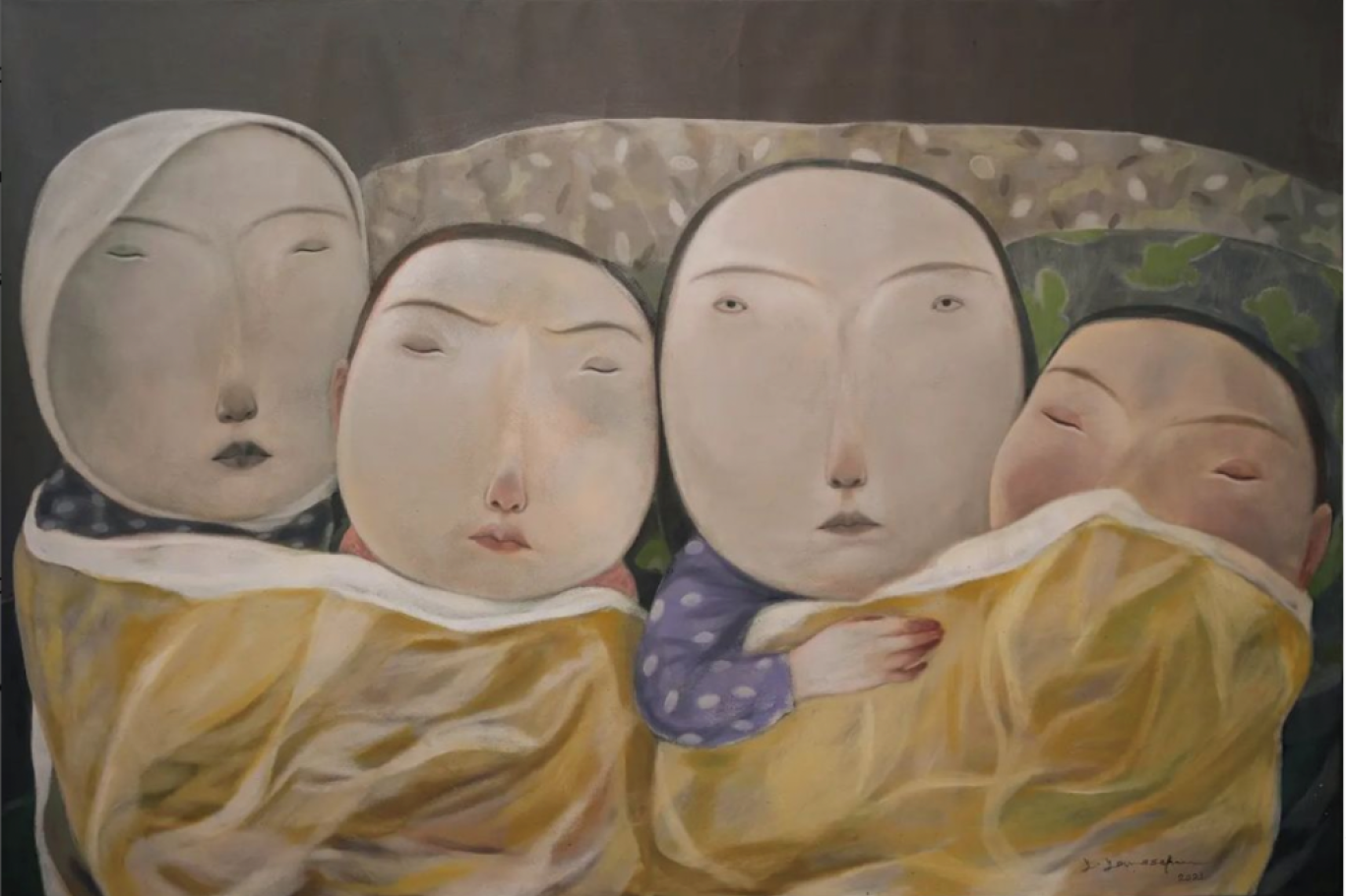 الزورق المليء بالمياه في لوحة محمد خياطة أشبه بمناطيد الهواء. منطاد زوارق يحمل زورقاً مكسوراً فوق الغيم. لا يمكن لهذه اللوحة إلا أن تردنا إلى الطفل الوحيد الذي وجد مرمياً على أحد الشواطئ نتيجة الهجرات غير الشرعية بالبحر. زورق محمد خياطة يأتي حاملاً أمنية تقول إن هذا الطفل مكانه فوق، فوق الغيم على رأس المنطاد يتفرج ويبصر كل شيء. أما في عمله الآخر فهي الحياة في تراكماتها، قطيعة مع الغيم ووصول إلى العدم، بحثاً عن السعادة.
