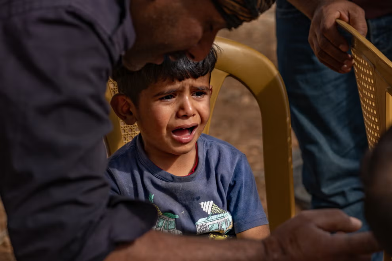 يعيش الأطفال في خوف الآن، ولا يتوقفون عن البكاء. يجلس وراء علي أحد أبنائه وهو يبلغ من العمر ست سنوات، وينتحب.