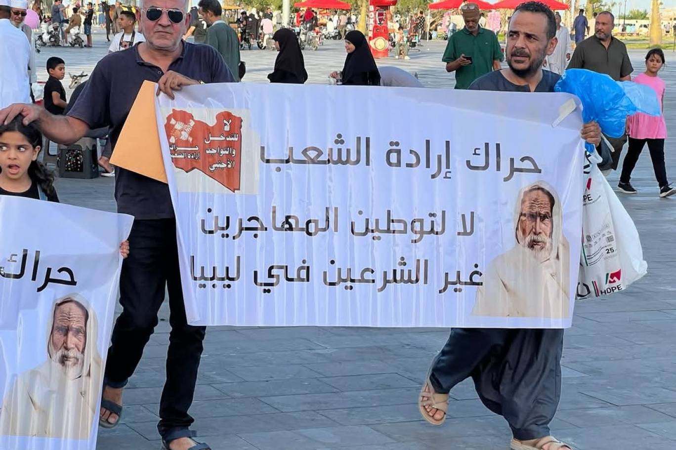 وقاد حراك "لا للتوطين" بطرابلس مساء أول من أمس الإثنين تظاهرة ضد ما وصفه بـ"مؤامرة تستهدف أمن وسيادة ليبيا". واتفقت جميع البيانات الصادرة عن الاحتجاجات بترحيل جميع المهاجرين غير النظاميين الذين لا يملكون أوراقاً ثبوتية وإجراءات قانونية واضحة وإقامة نظامية وشهادات صحية وعمل وسكن مثبت، مؤكدين بأنها إجراءات معمول بها في جميع الدول.