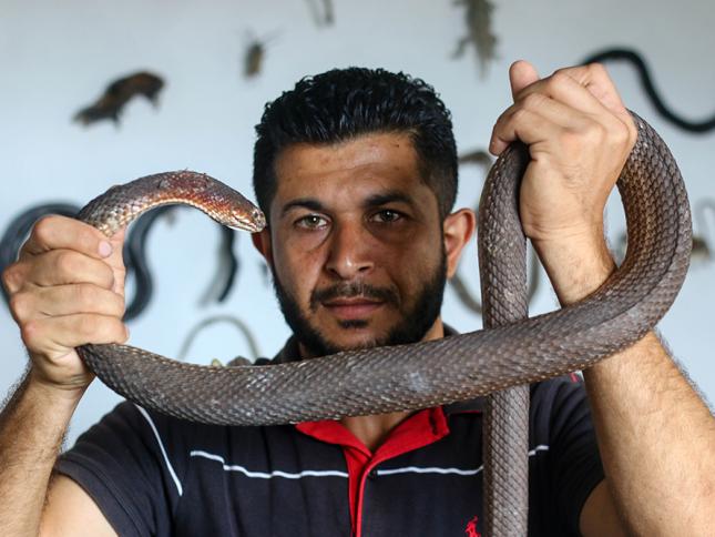 اللعب مع الأفاعي... فلسطيني يعيش مع 25 نوعا