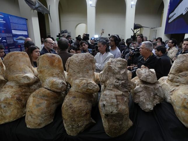 بيئة العثور على حفريات في بيرو لما قد يكون أضخم مخلوق عرفته الأرض عاش منذ نحو 38 إلى 40 مليون عام خلال الحقبة الفجرية ووزنه يصل إلى 340 طناً