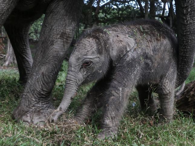 ولادة صغيرة فيل سومطري مهدد بالانقراض في إندونيسيا